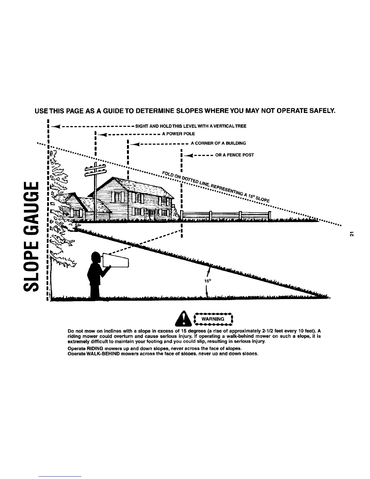 USE THIS PAGE AS A GUIDE TO DETERMINE SLOPES WHERE YOU MAY NOT OPERATE SAFELY.