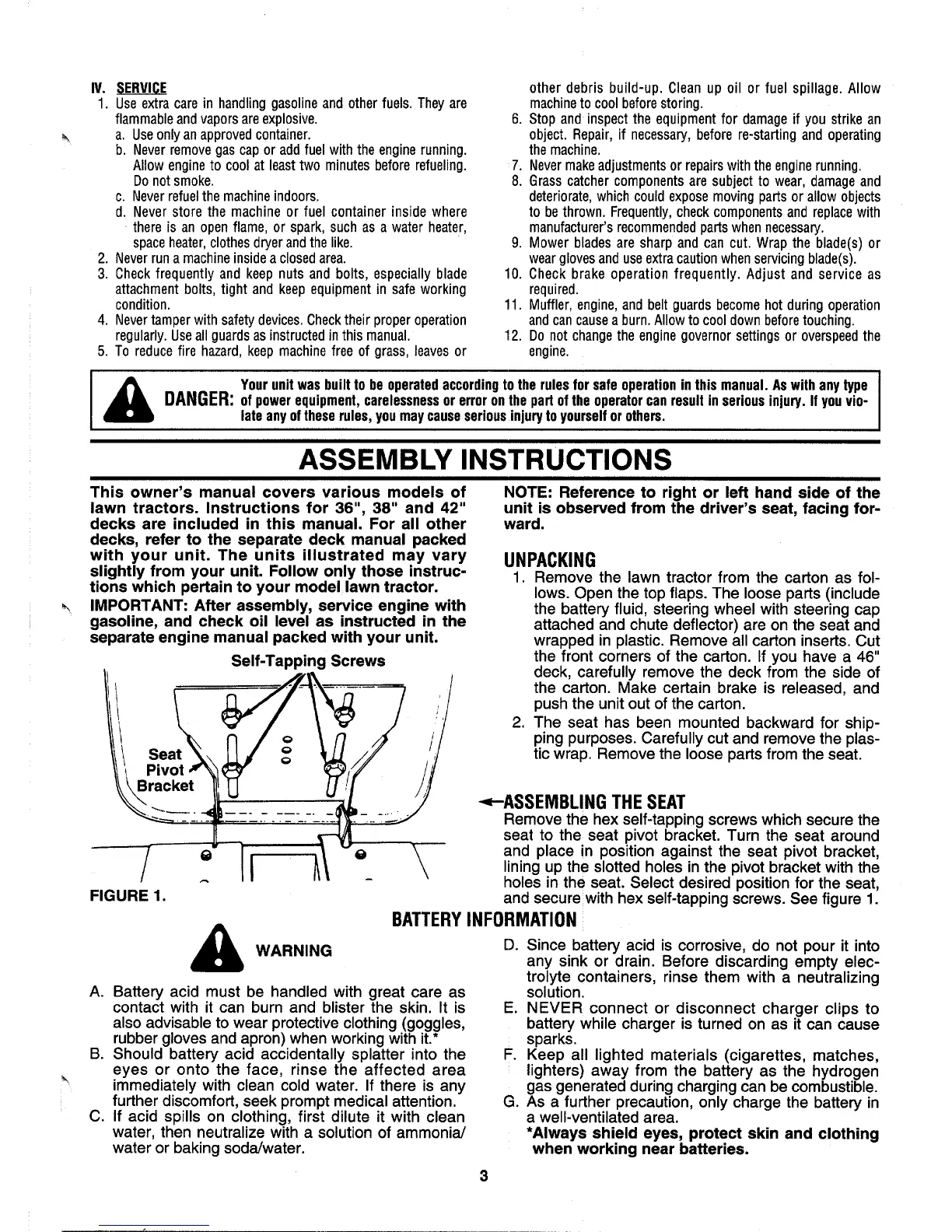 MTD 660 thru 679 - Service; Gas and Oil Fill-Up; Starting the Engine; Assembly Instructions