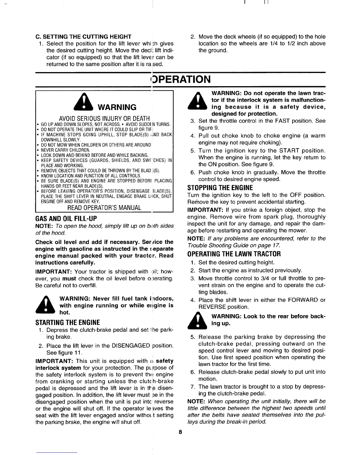 MTD 660 thru 679 - Operation; Gas and Oil Fill-Up; Starting the Engine; Stopping the Engine