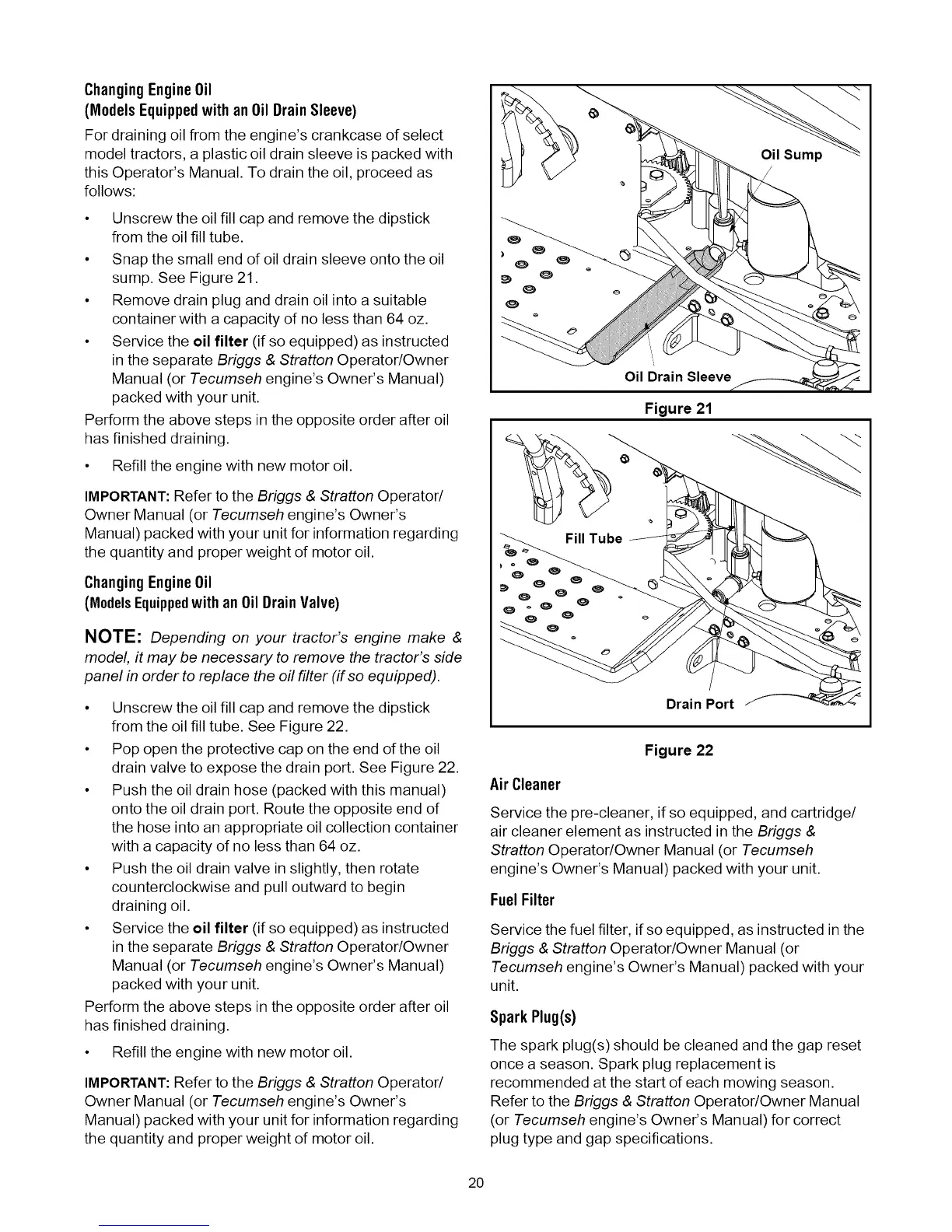 IMPORTANT:Refer to the Briggs & Stratton Operator/