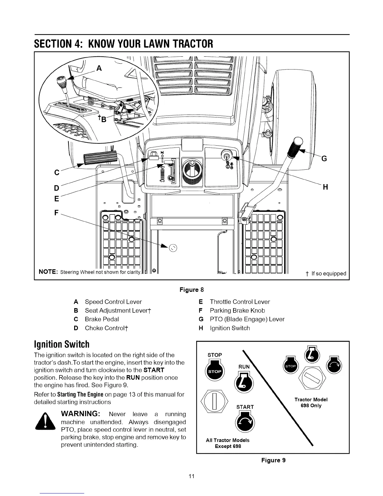 MTD 698 - SECTION 4: KNOW YOUR LAWN TRACTOR; Ignition Switch