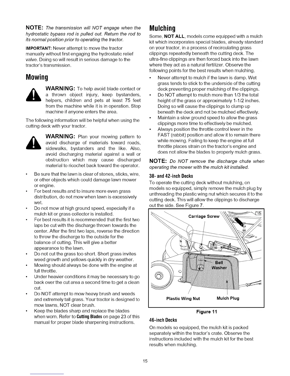 beneath the deck and not be mulched effectively.