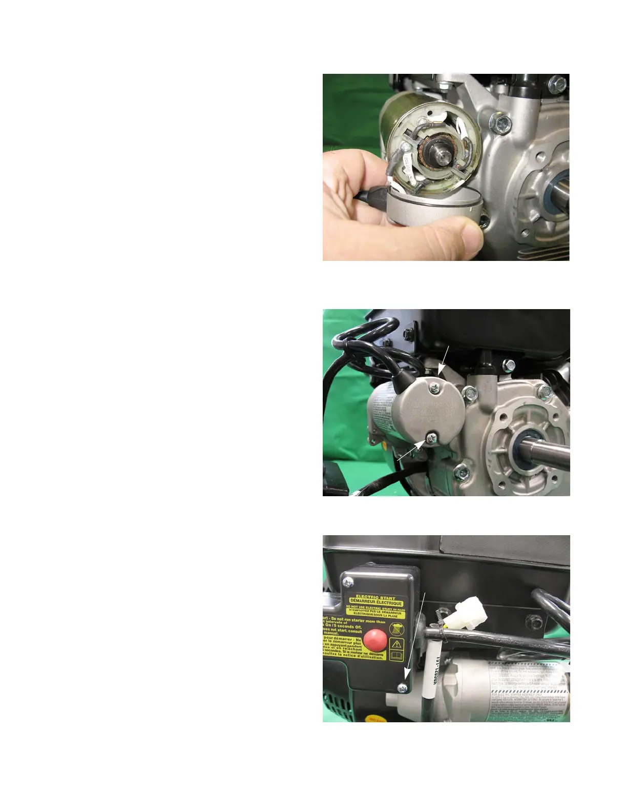 20. Install the two starter screws with new insulator