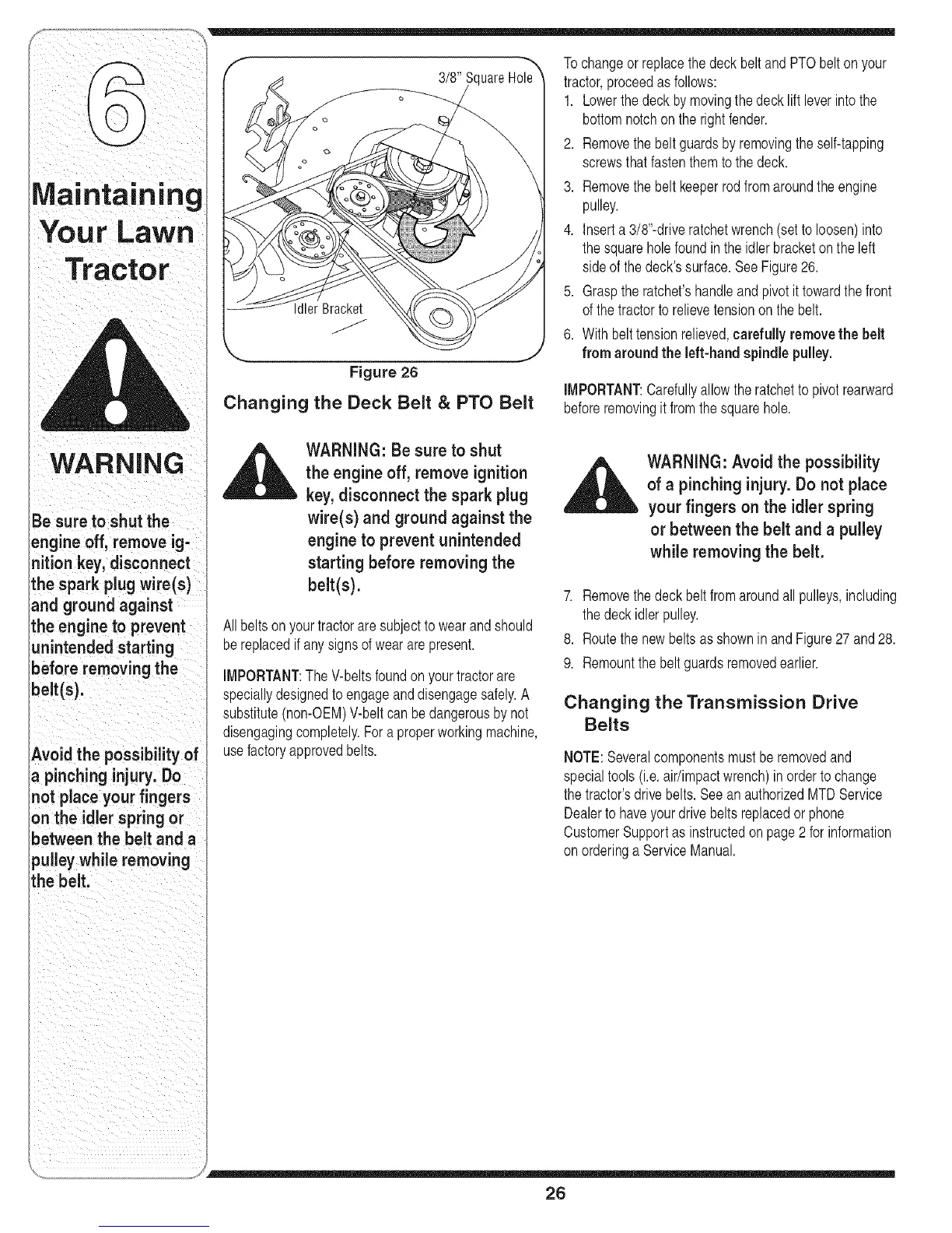 thetractor'sdrivebelts. Seean authorizedMTDService