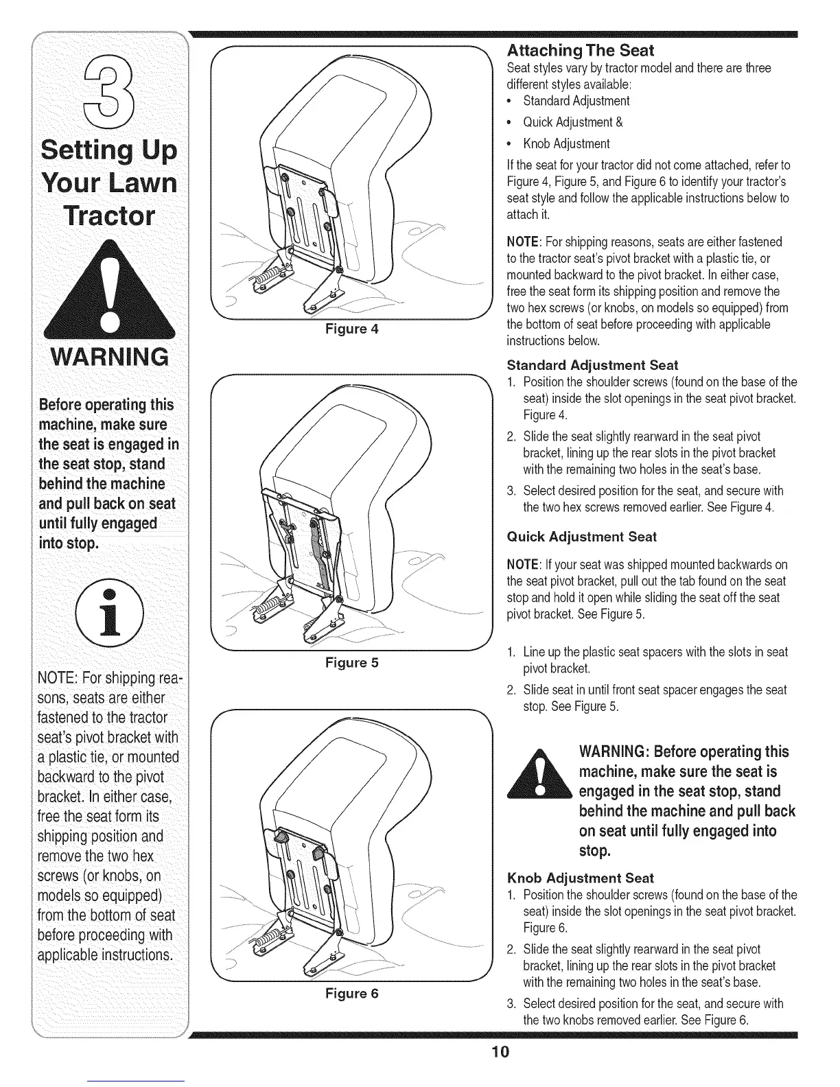 If the seatfor yourtractordid notcomeattached,referto