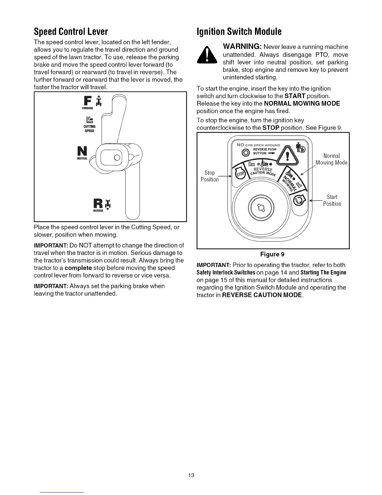 SafetyInterlockSwitcheson page 14 and StartingThe Engine