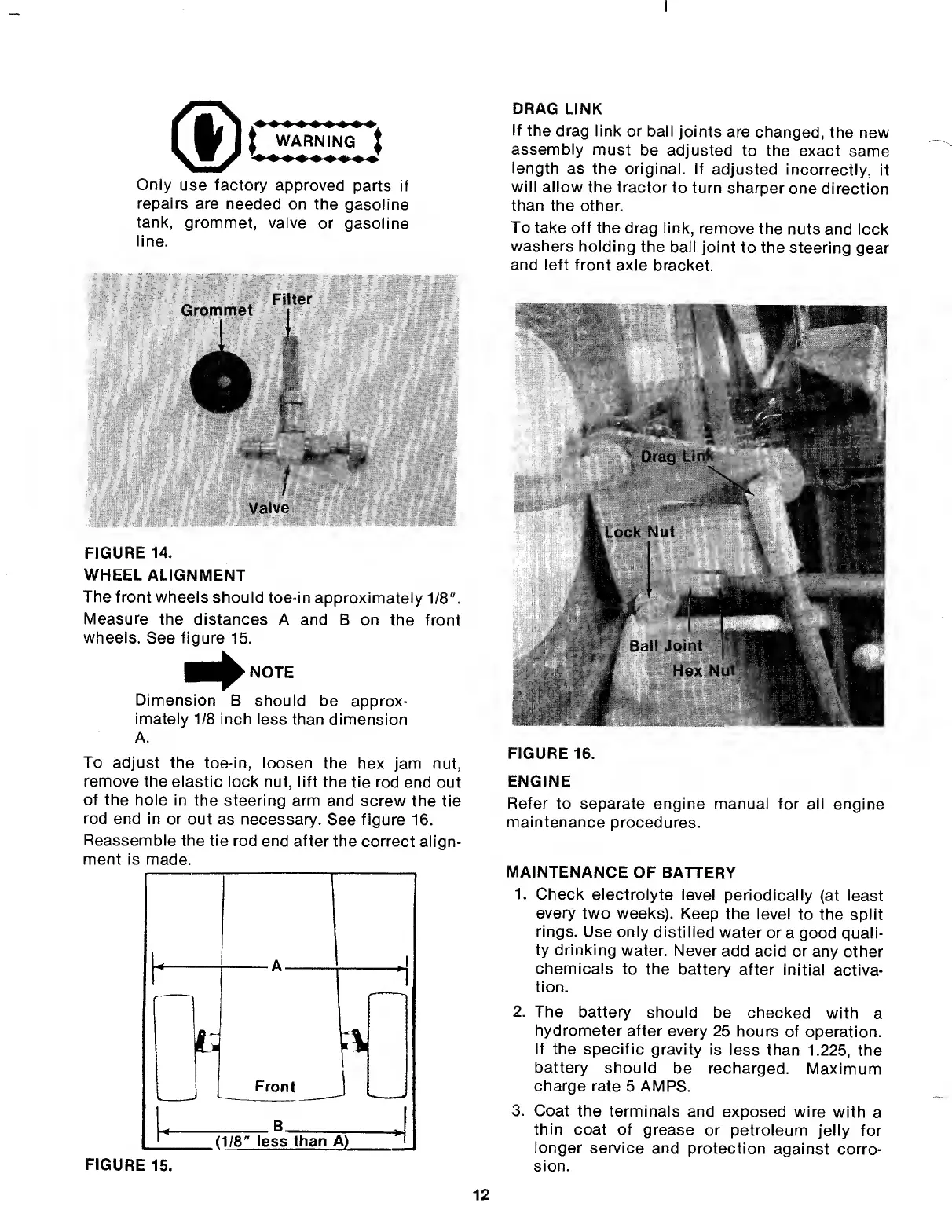 MTD 824 - Wheel Alignment; Maintenance of Battery