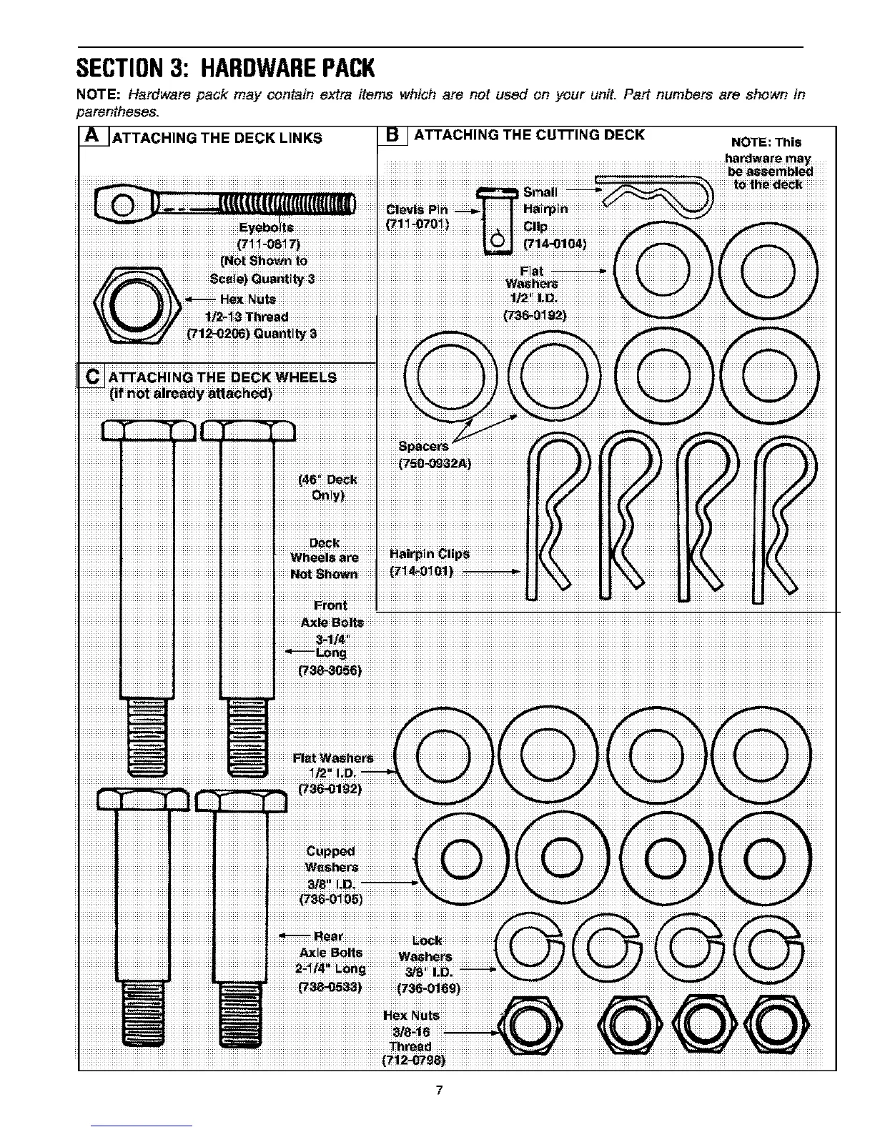 NOTE: Hardware pack may contain extra items which are not used on your unit. Part numbers are shown in