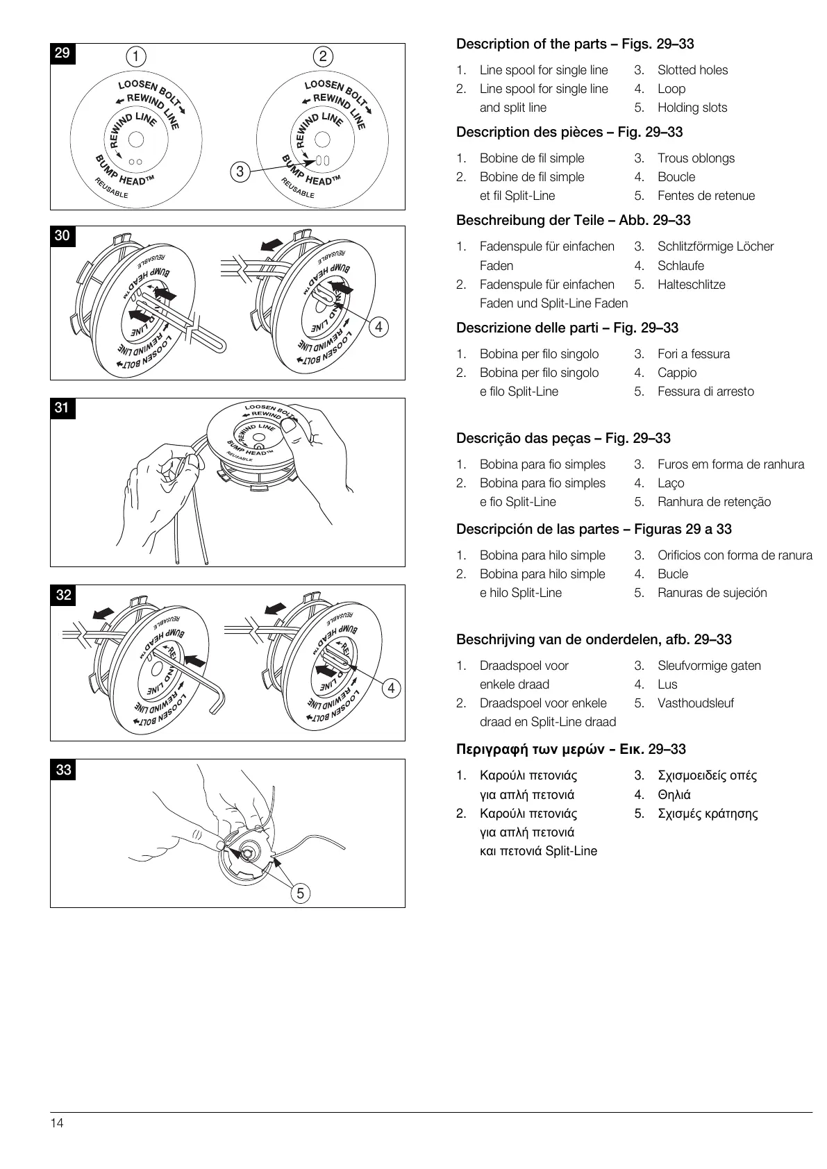 2. Καρούλι πετονιάς 5. Σχισµές κράτησης