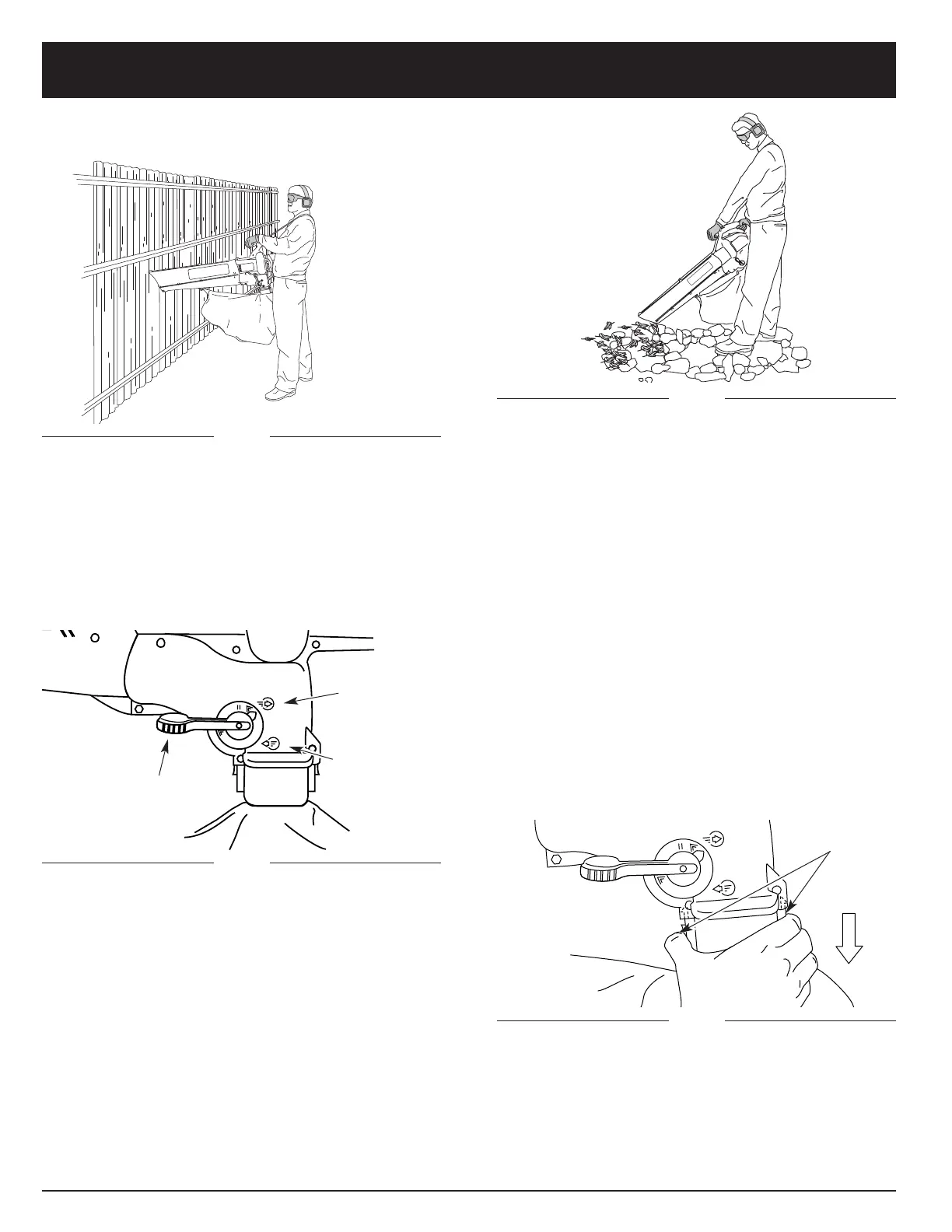 Puede usar el soplador en muros, voladizos y cercas (Fig. 17).