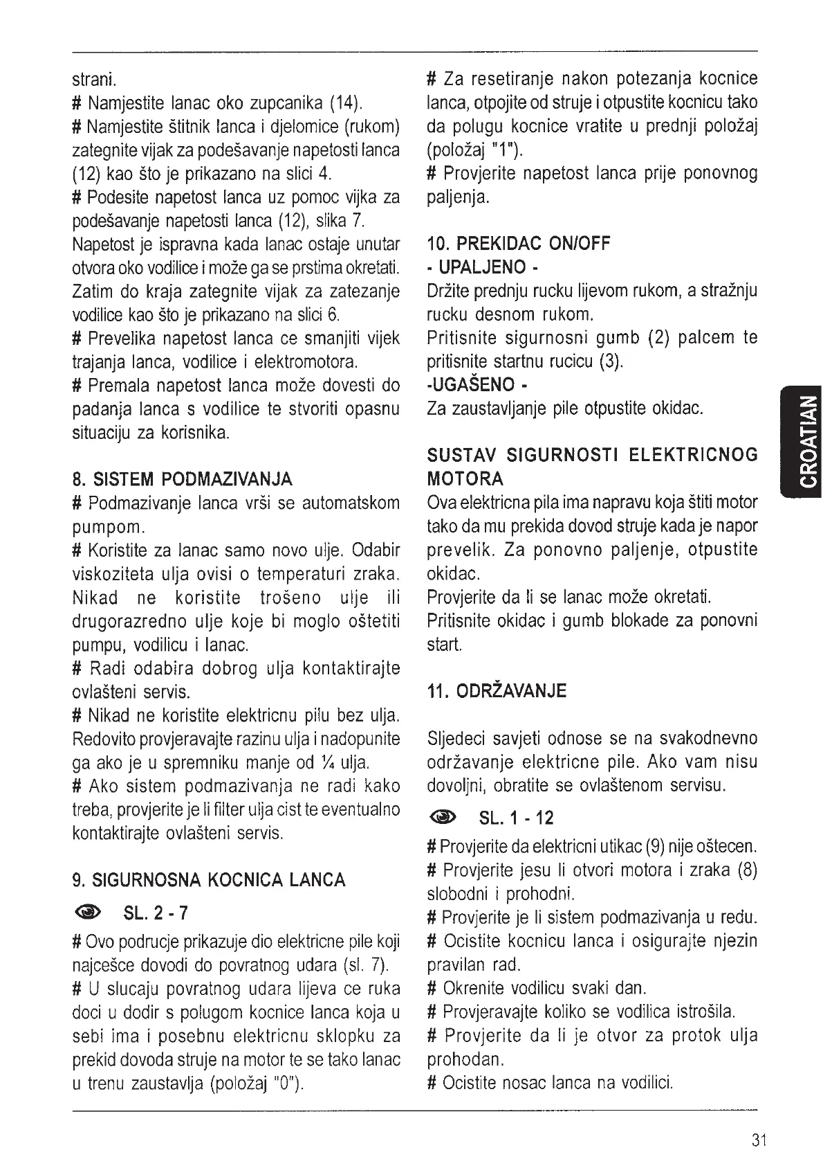 MTD ECS 40 - Sistem Podmazivanja; Sigurnosna Kocnica Lanca; Prekidac On;Off; Održavanje