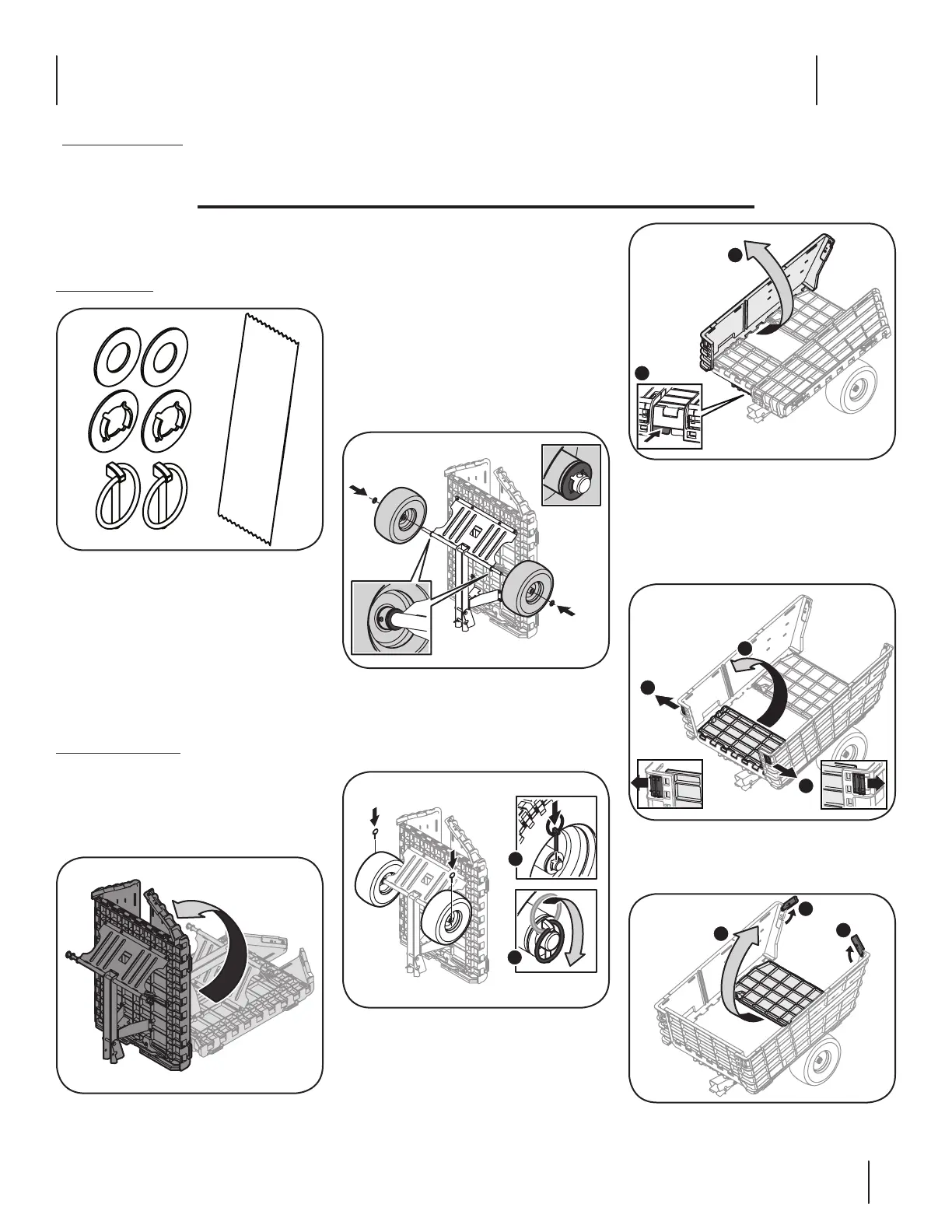 • One Hauler Assembly • One Tongue Assembly • Two Wheel Assemblies