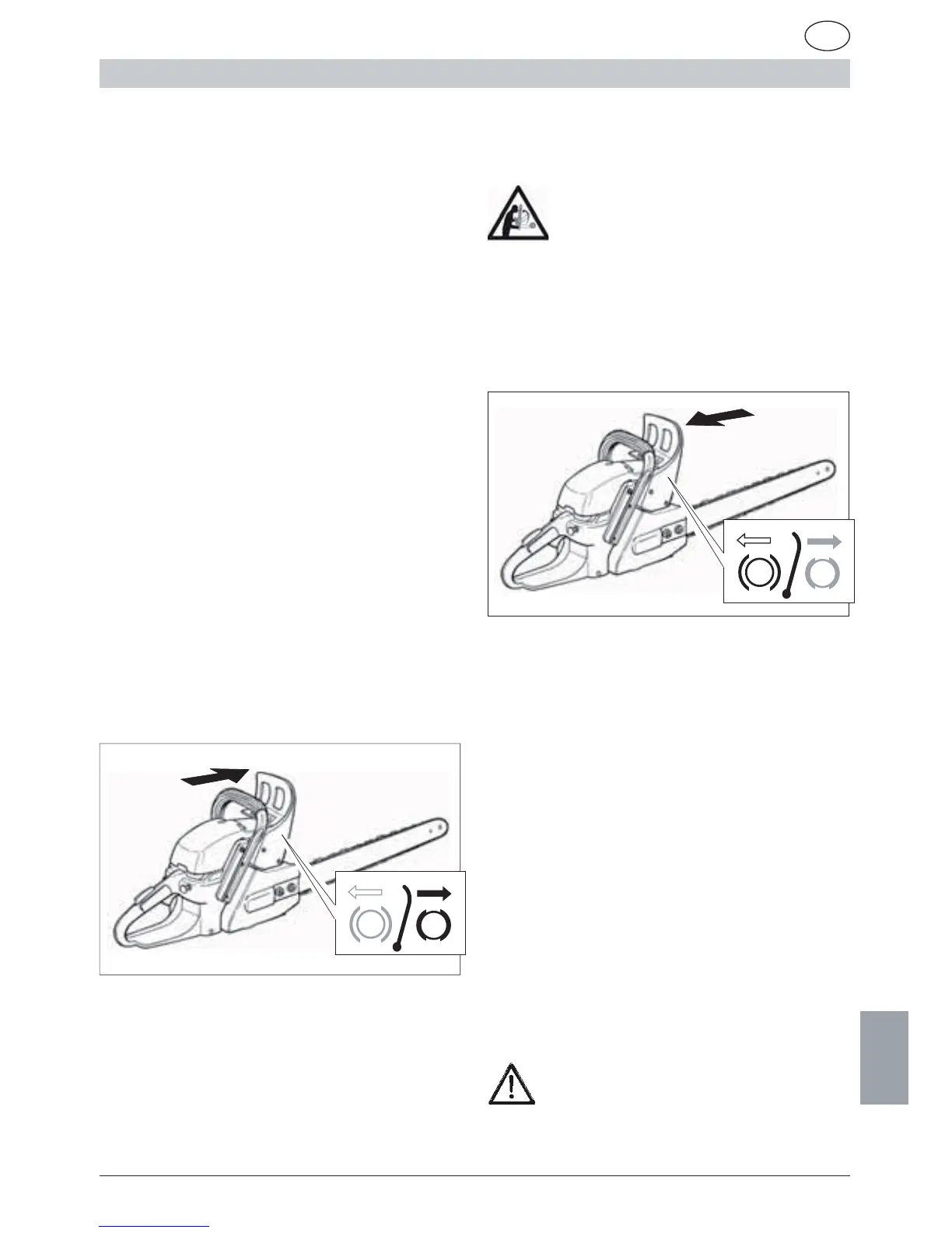 c) Frâna de lanţ se poate activa şi apăsând ma-