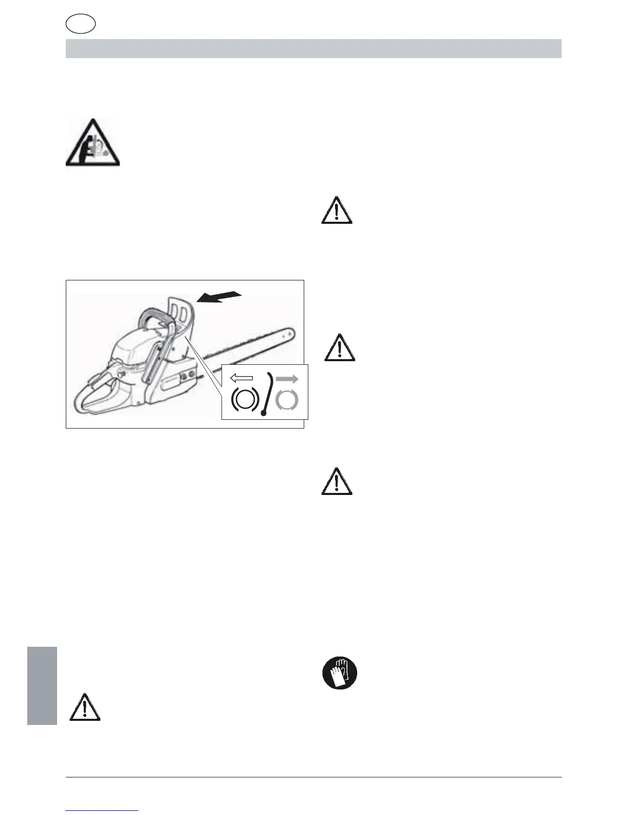 c) ķēdes bremzi var ieslēgt arī manuāli, pavelkot