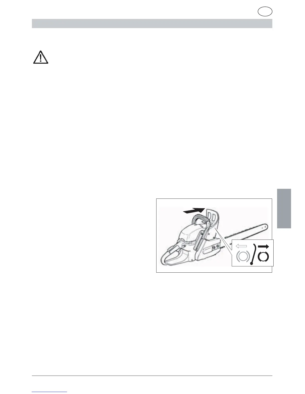 kjedebremsen innkoples automatisk når den