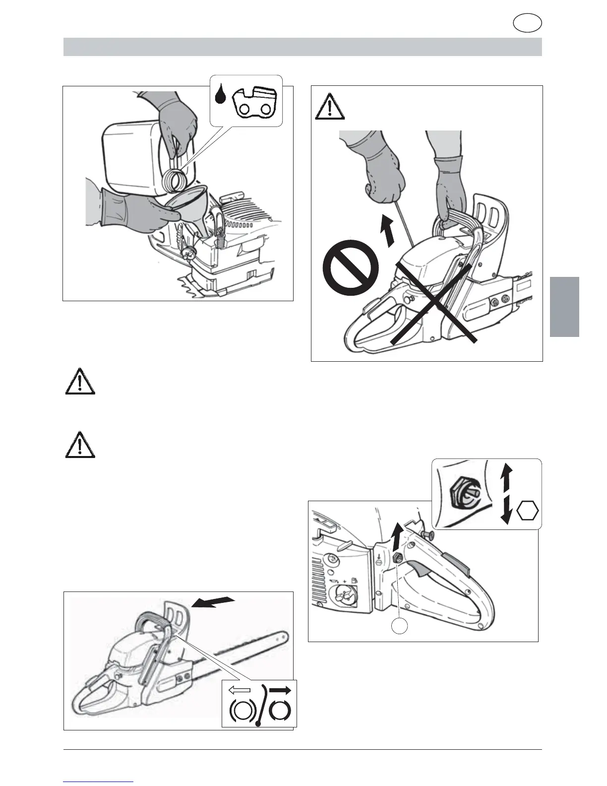 1) Poser la tronçonneuse sur une surface sta-