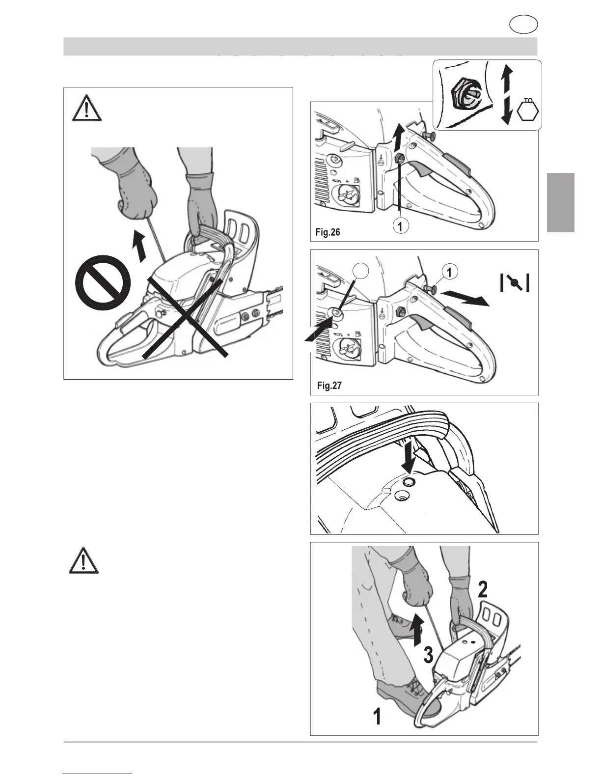 Fortsätt att dra i startkabeln (fig.29) tills motorn