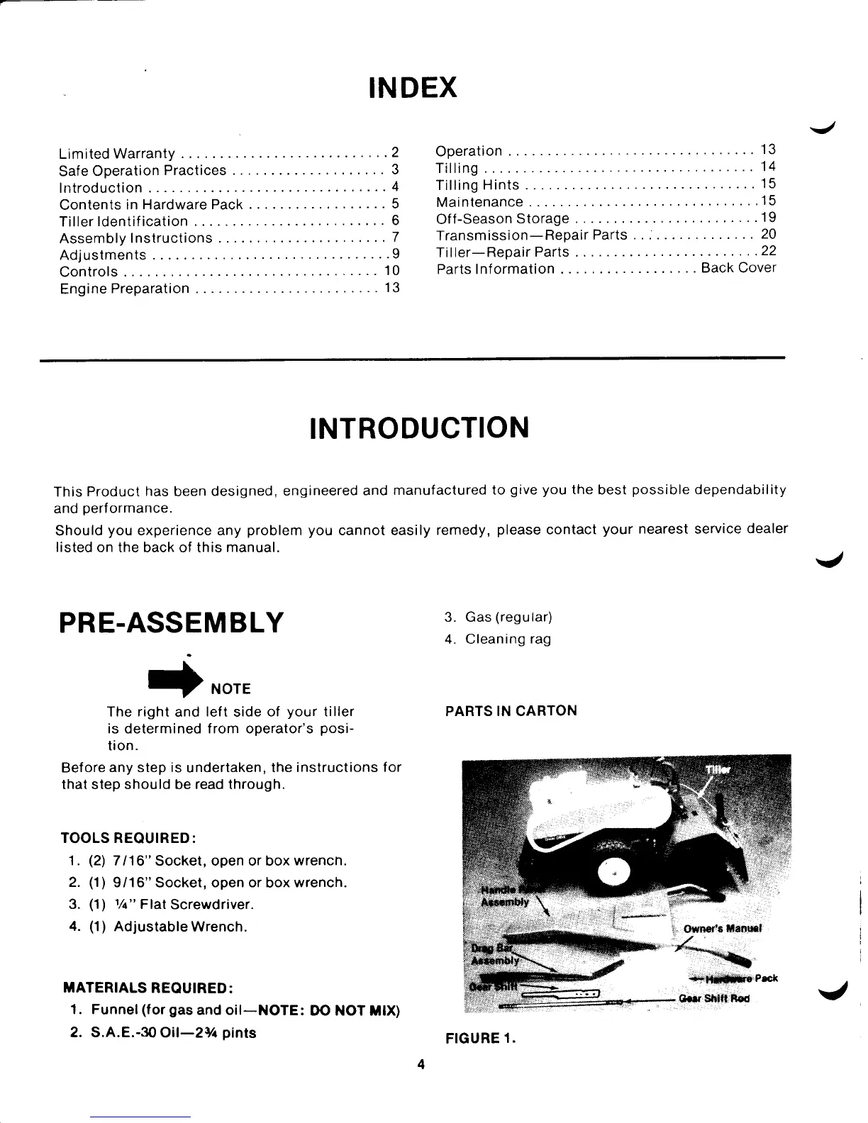 MTD Mark Master 218-405-06 - Introduction; Pre-Assembly; Parts in Carton