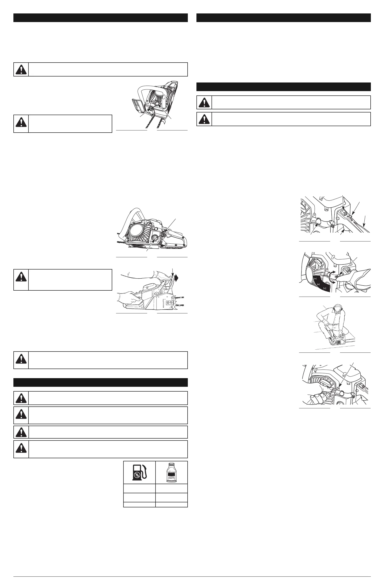 • Assurez-vous que le frein de chaîne est débrayé en tirant l’écran de sécurité de la poignée avant / le frein de chaîne