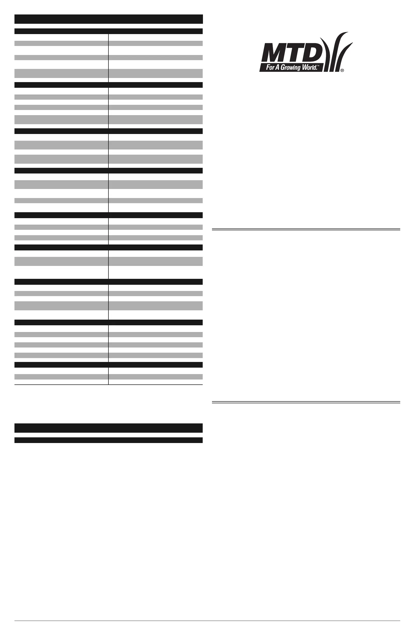 MTD LLC garantiza este producto contra defectos en el material y la mano de obra durante un período de dos (2) años a partir de la fecha