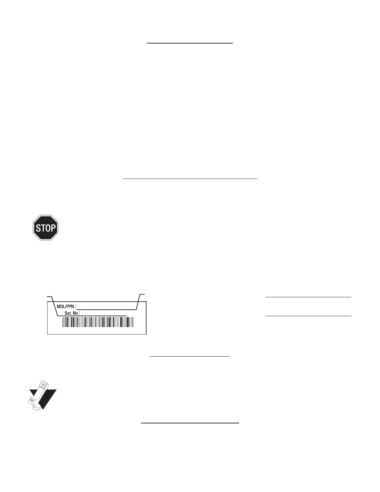 ci-dessous. Veuillez copier le numéro de modèle et le numéro de série de l’équipement dans l’espace ci-dessous