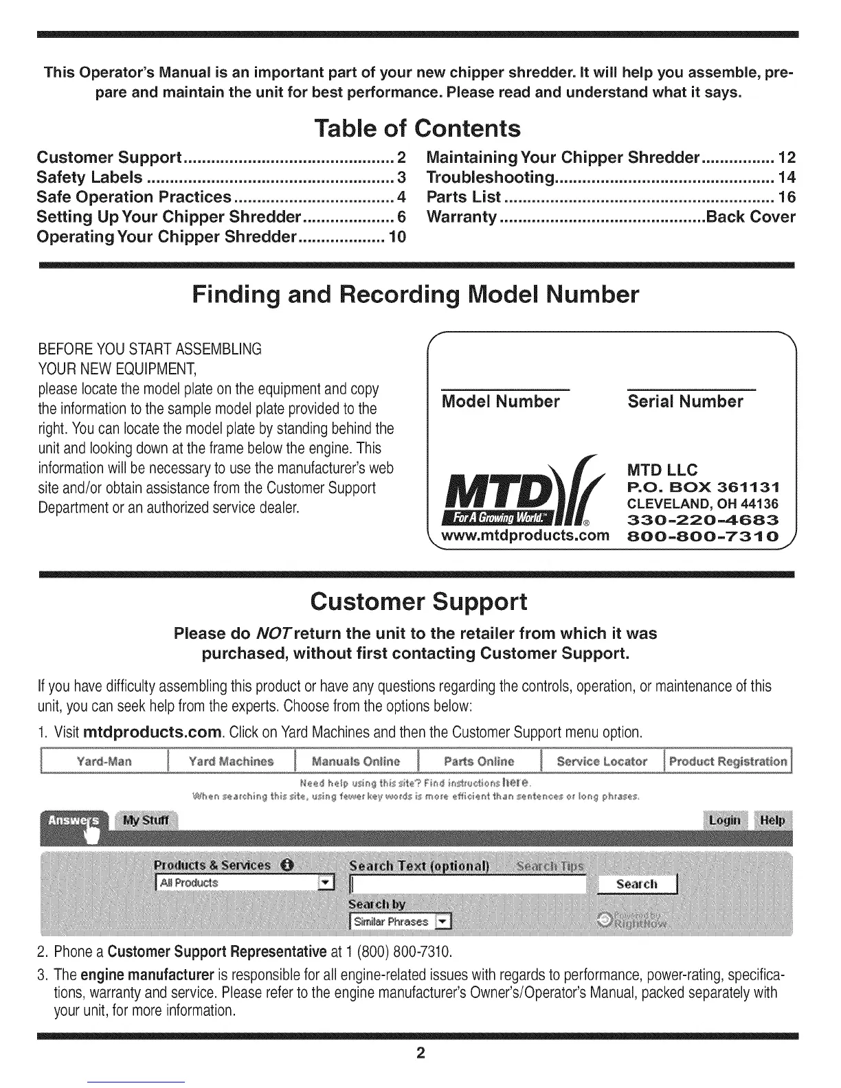 1. Visit mtdproducts.com. Click on Yard Machinesand then the CustomerSupport menu option.