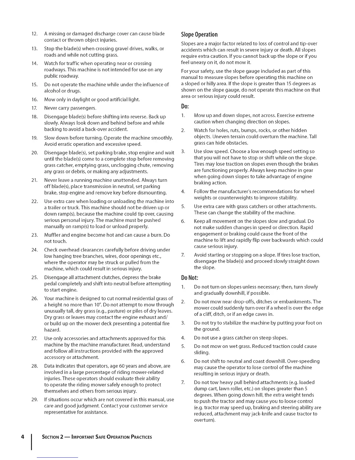 dump cart, lawn roller, etc.) on slopes greater than 5
