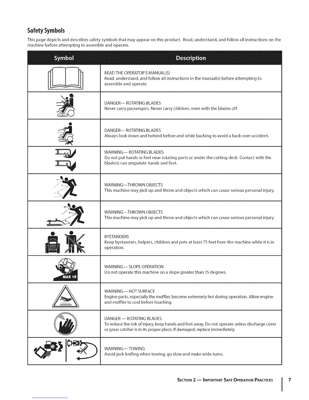 SECTION 2 -- IMPORTANT SAFE OPERATION PRACTICES 7