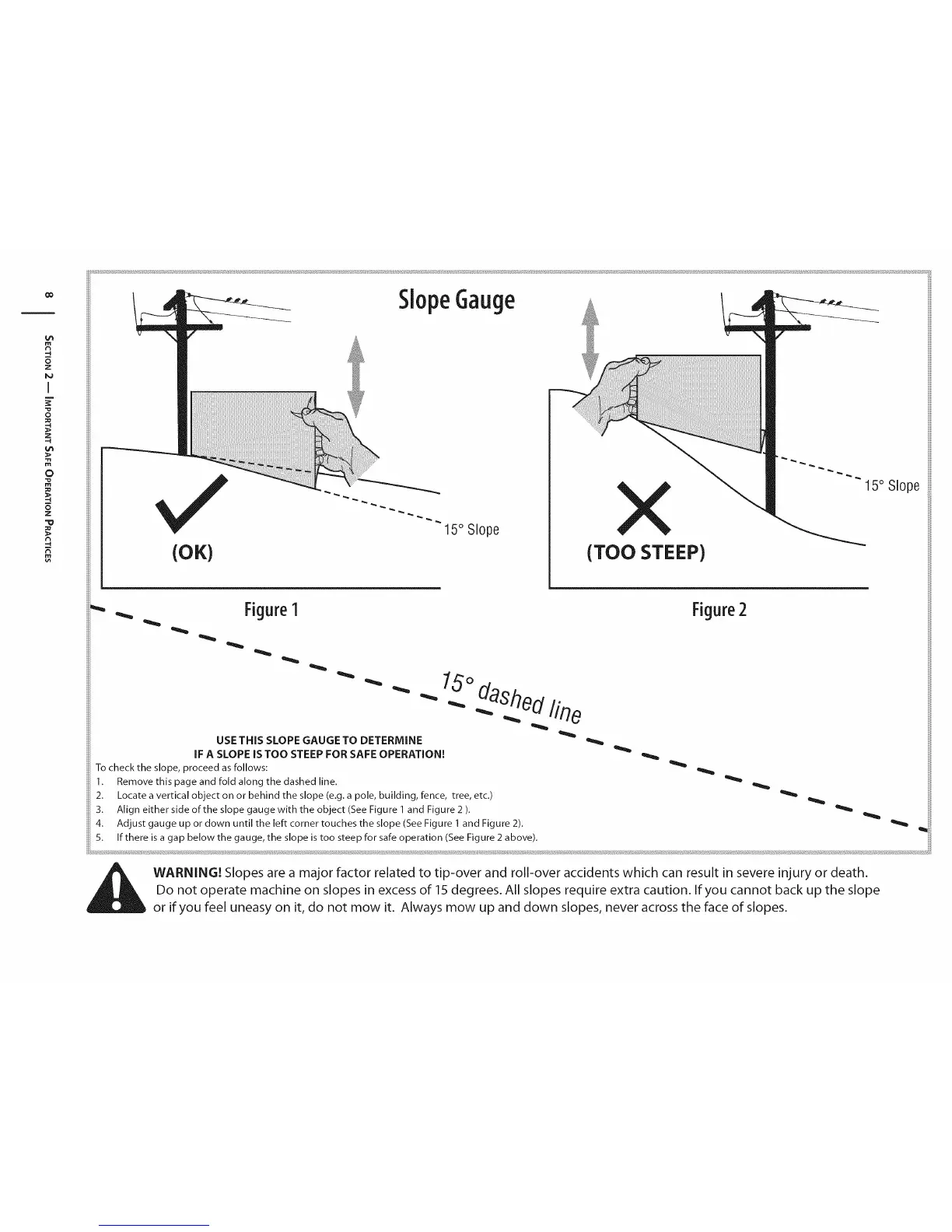 Do not operate machine on slopes in excess of 15 degrees. All slopes require extra caution. If you cannot back up the slope