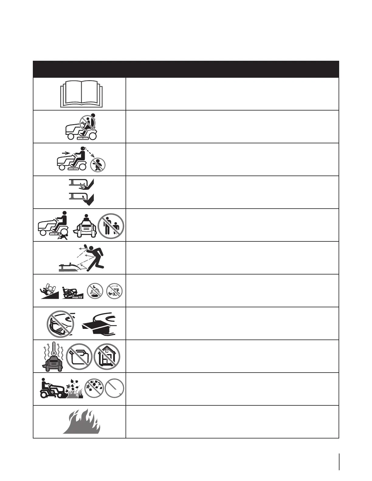 Do not drive through piles of dry leaves or tall dry grass. Keep machine free of debris.
