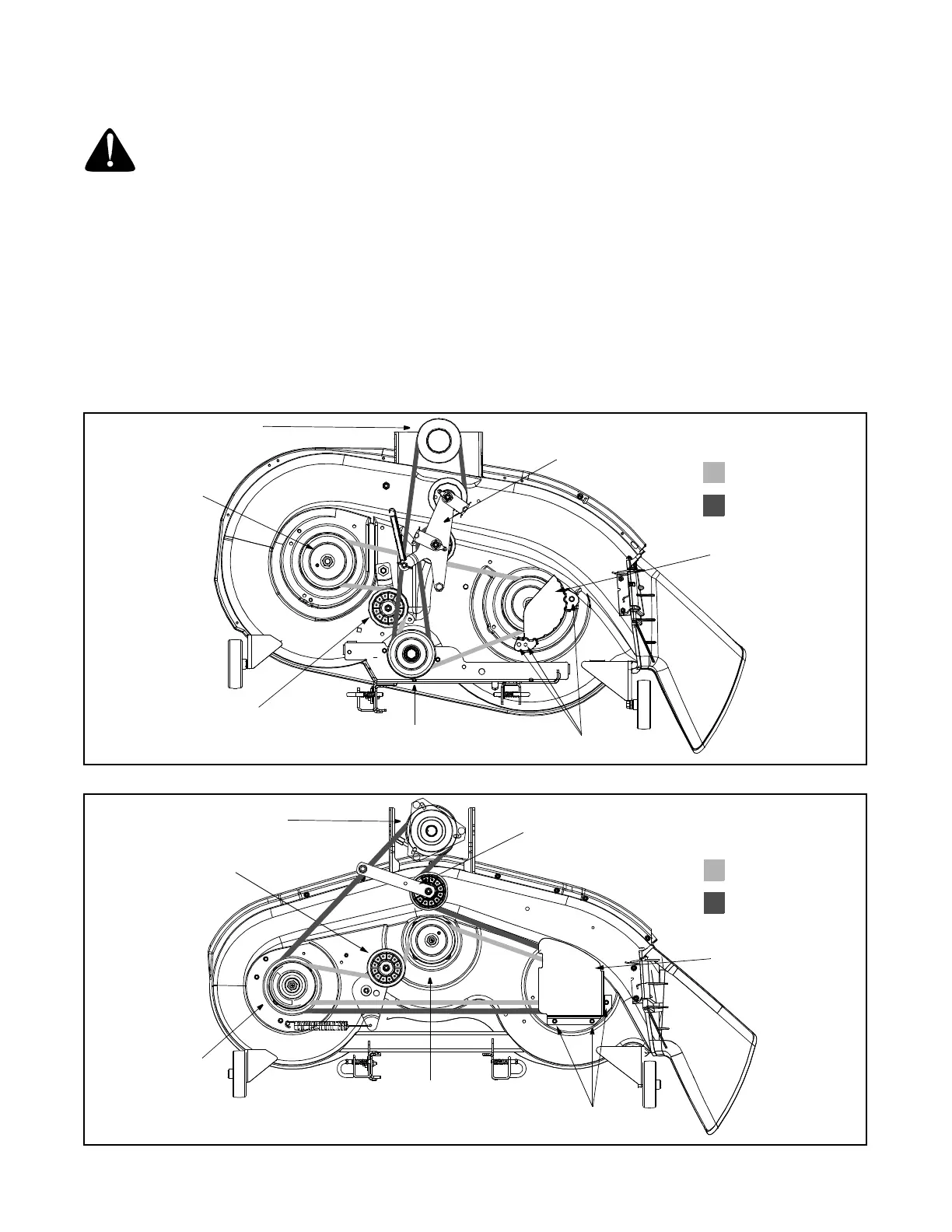 • Route the new belts (deck belt first) as shown in