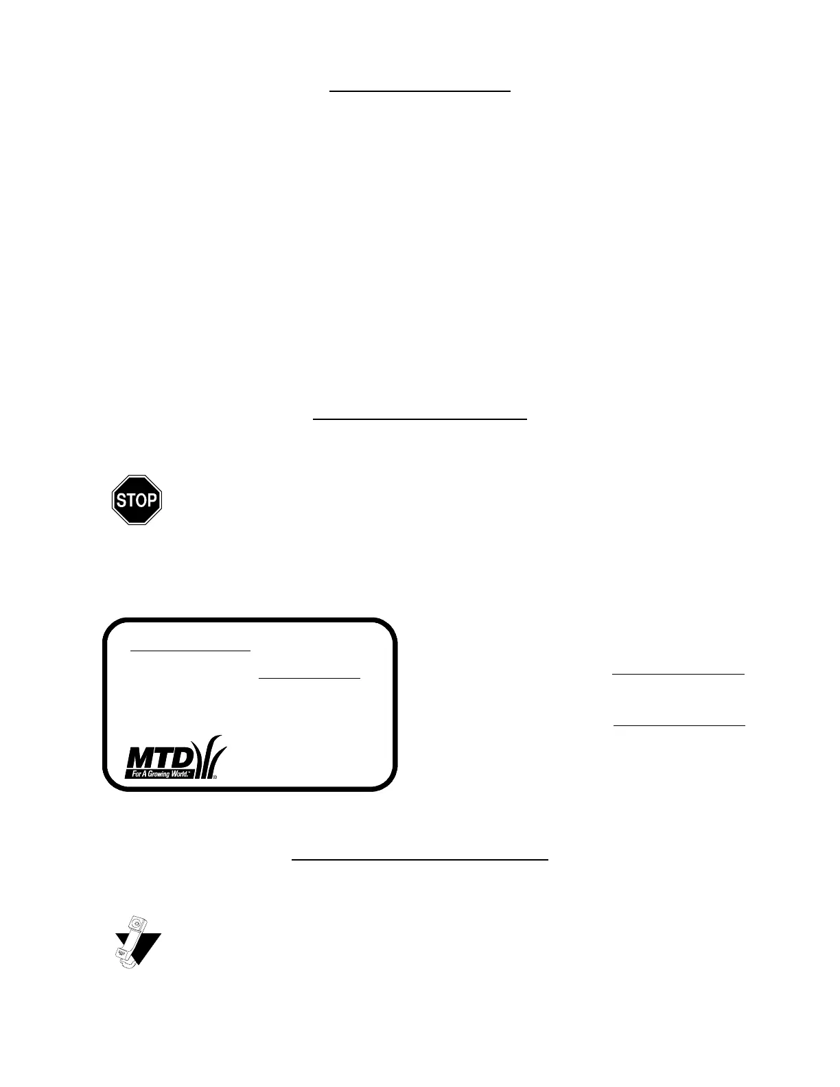 down at the cutting deck. A sample model plate is explained below. For future reference, please copy