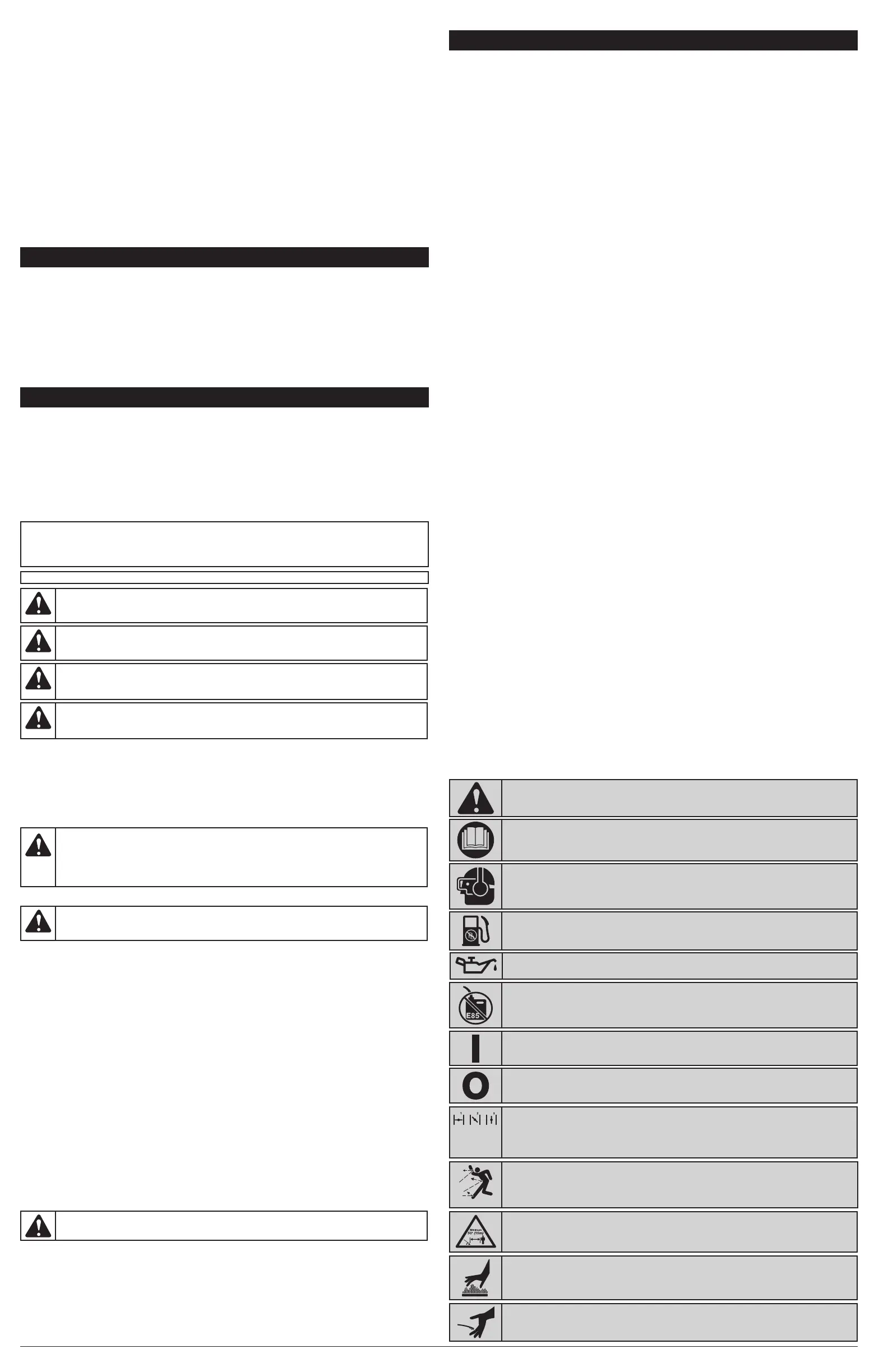• N’UTILISEZ PAS DE L’ESSENCE E85 DANS CET APPAREIL