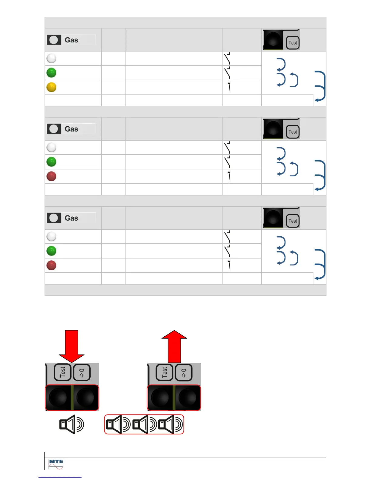 Note: The test mode is also terminated automatically 15 minutes after the last button operation. To