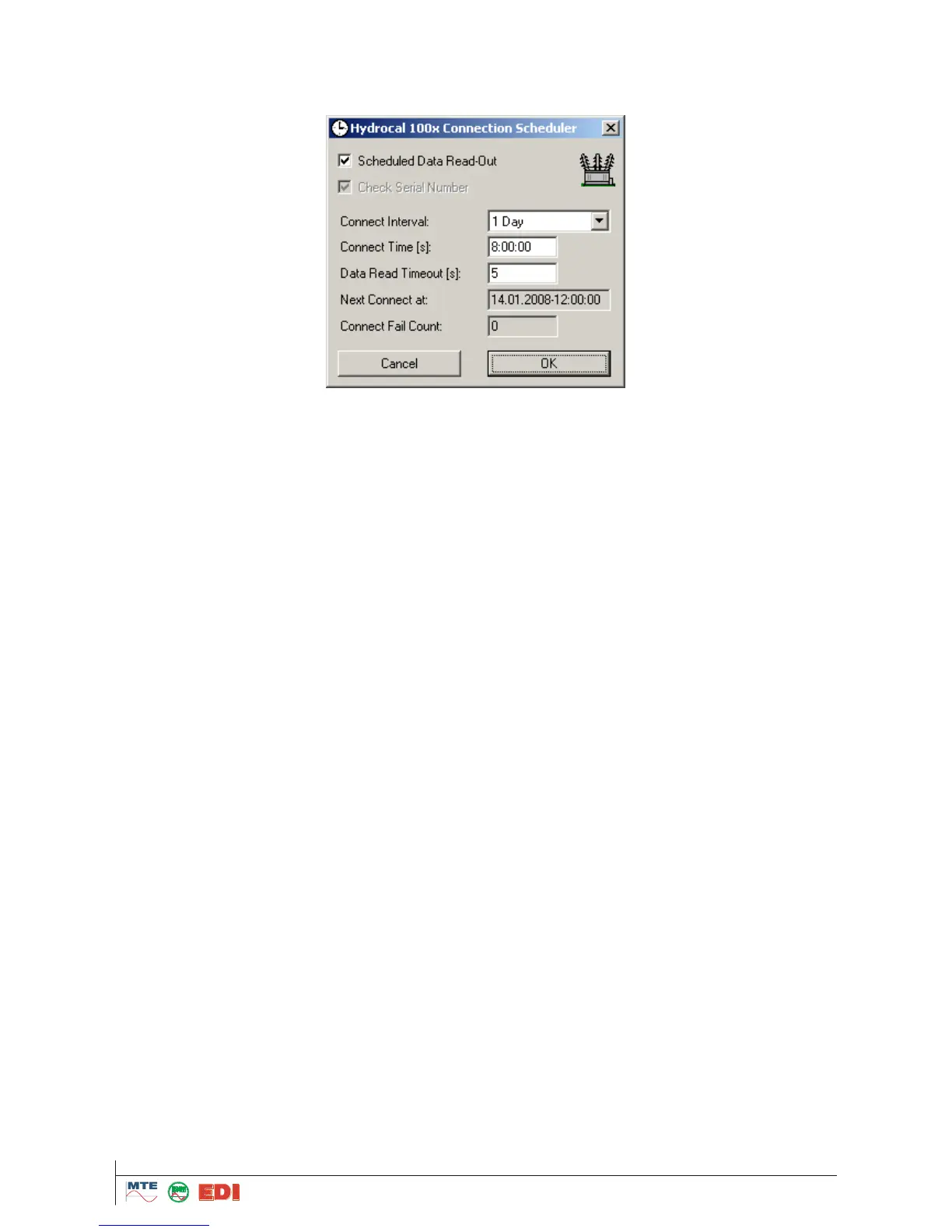 The connection scheduler dialog allow to configure the automatic history data read-out. (For further