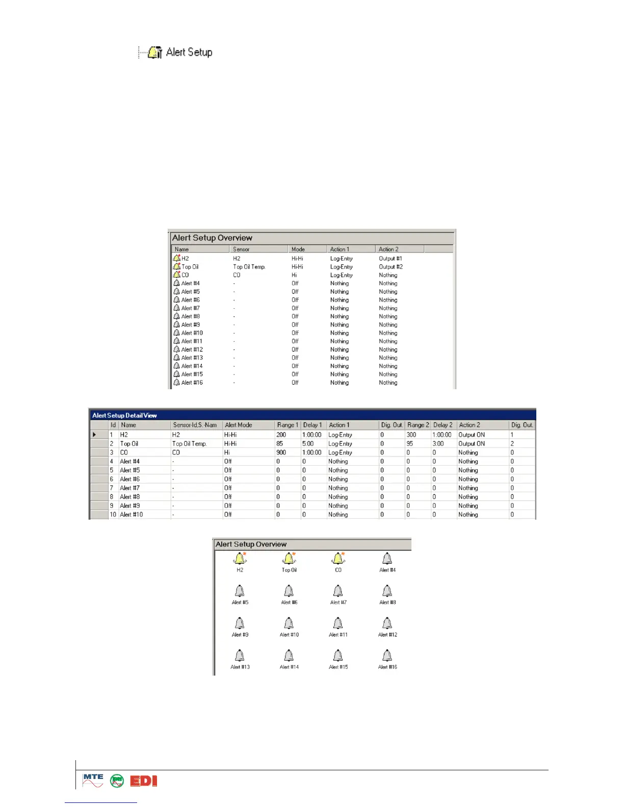 In the overview of alarms, (Alert Setup Overview) the following displays forms can be selected: