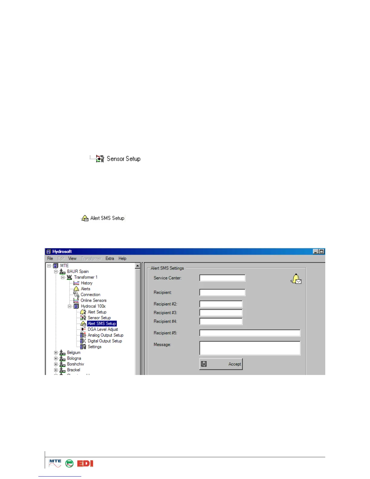 In the menu , the configuration of the alert SMS transmission is made if HYDRO-