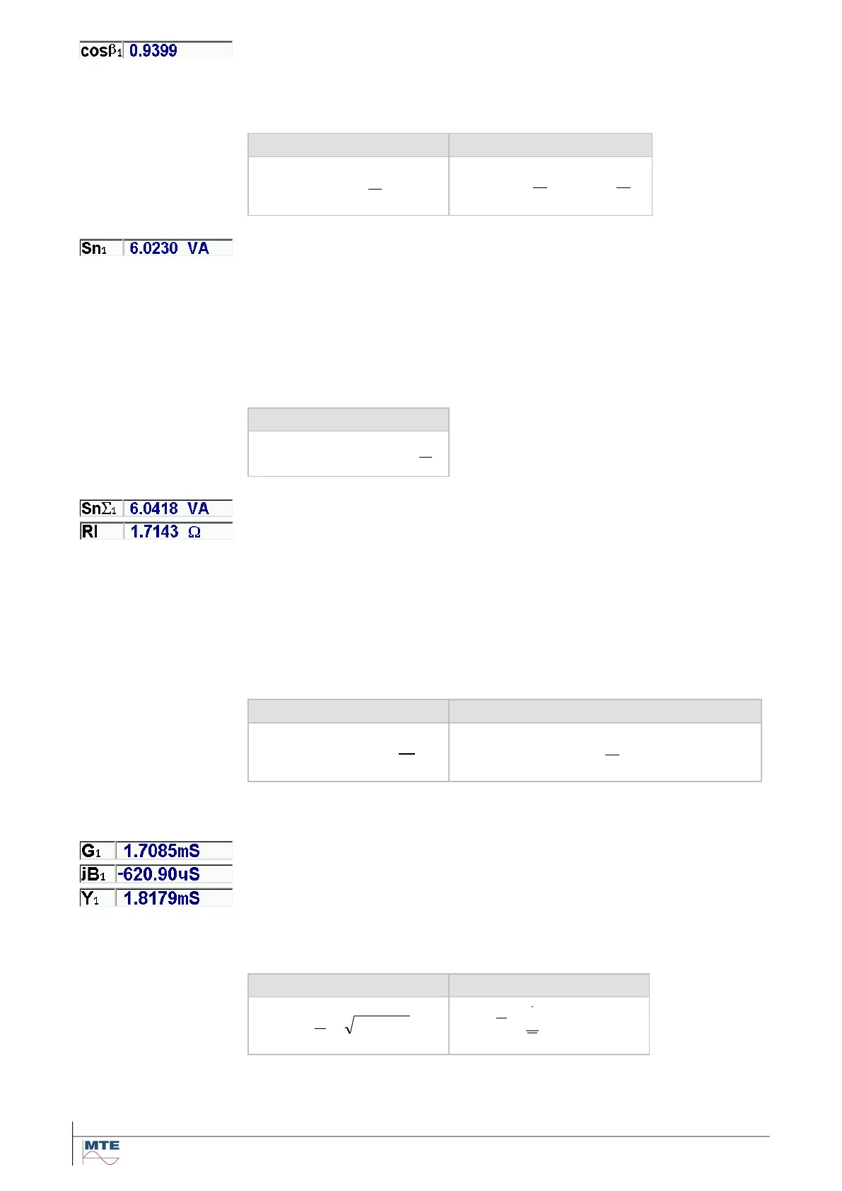 The admittance (Y) and its real part (G) and imaginary part (jB) are calcu-