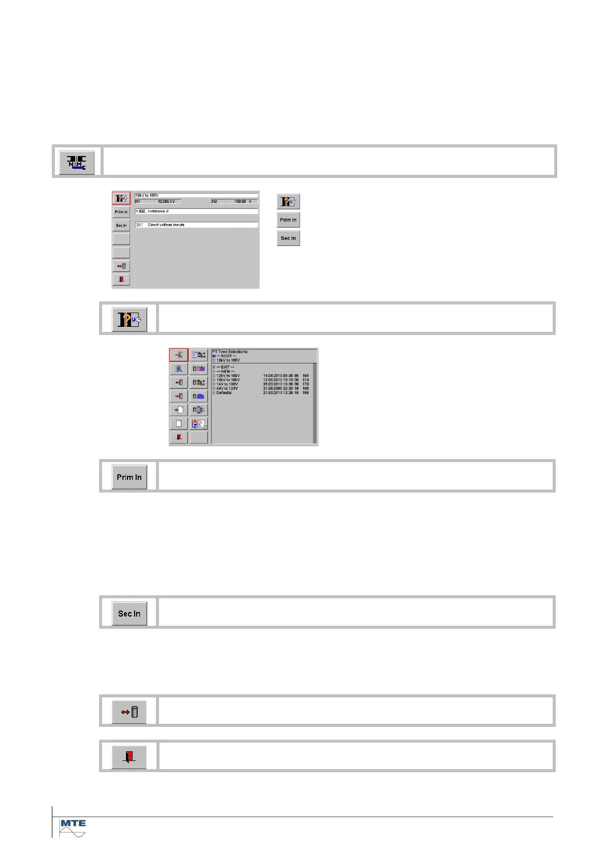 Select / Edit Voltage transformer data