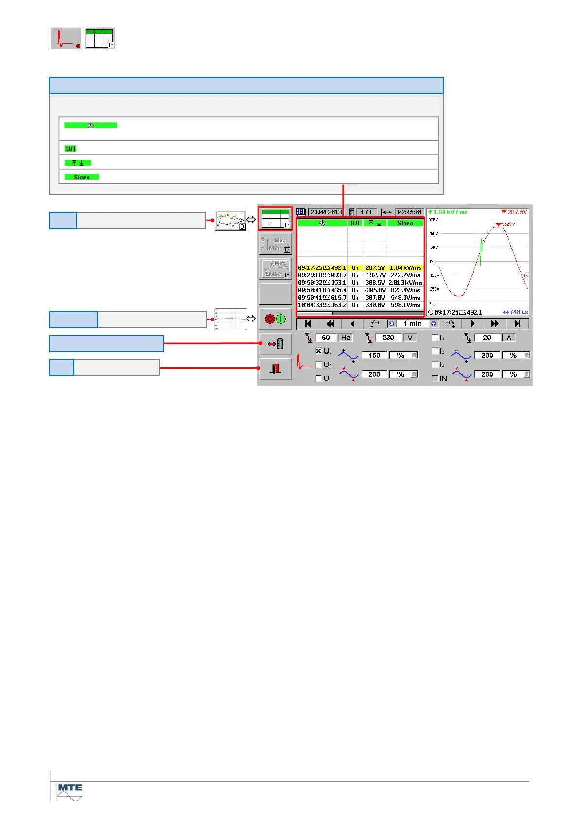 Positive / negative peak value: Highest positive or negative value reached during the event.