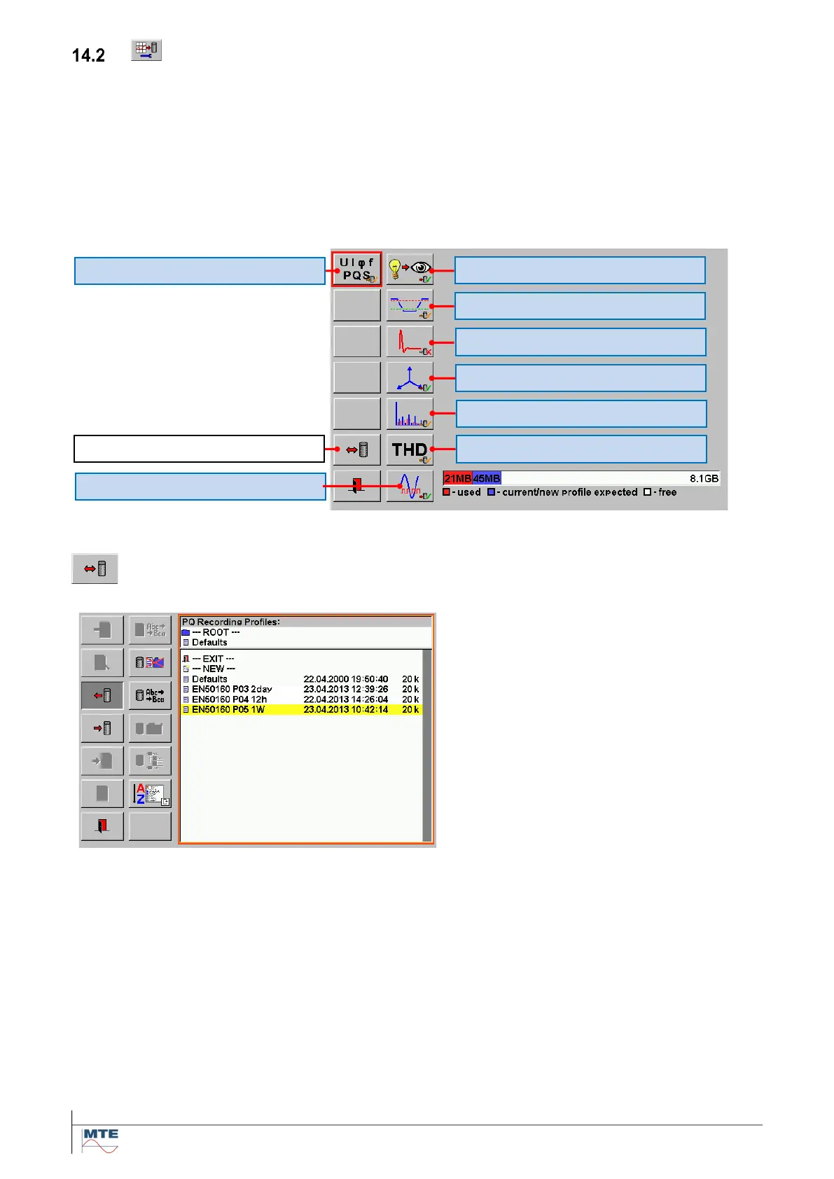 The recording and analysis settings for the different PQ parameters shown with functional buttons on