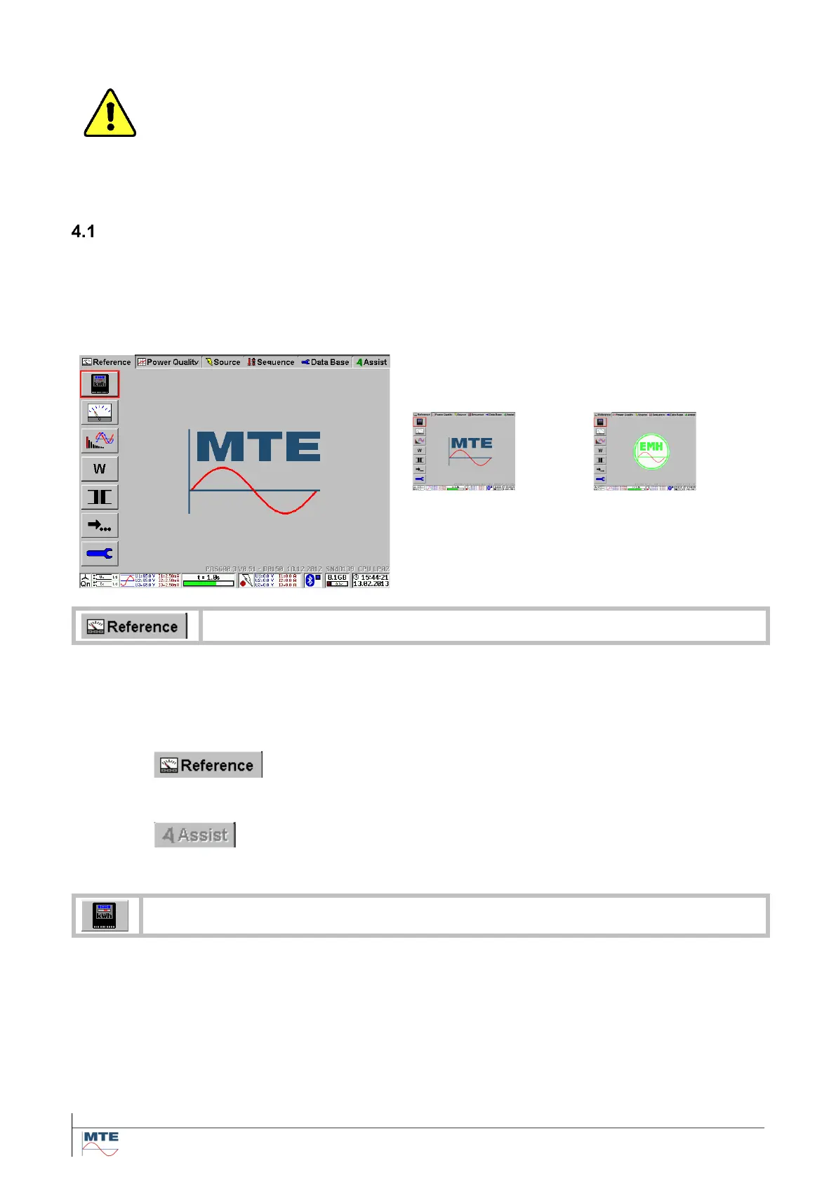 After start up the Reference Menu Card (MC) is