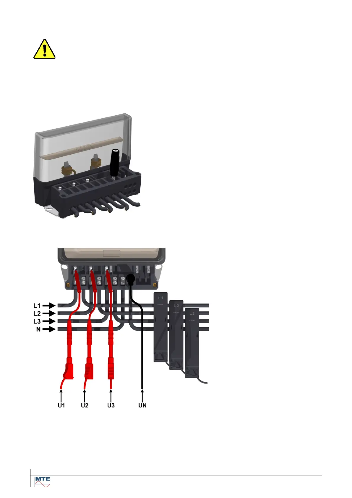 Connections to meter under test (example for IEC-type meter)
