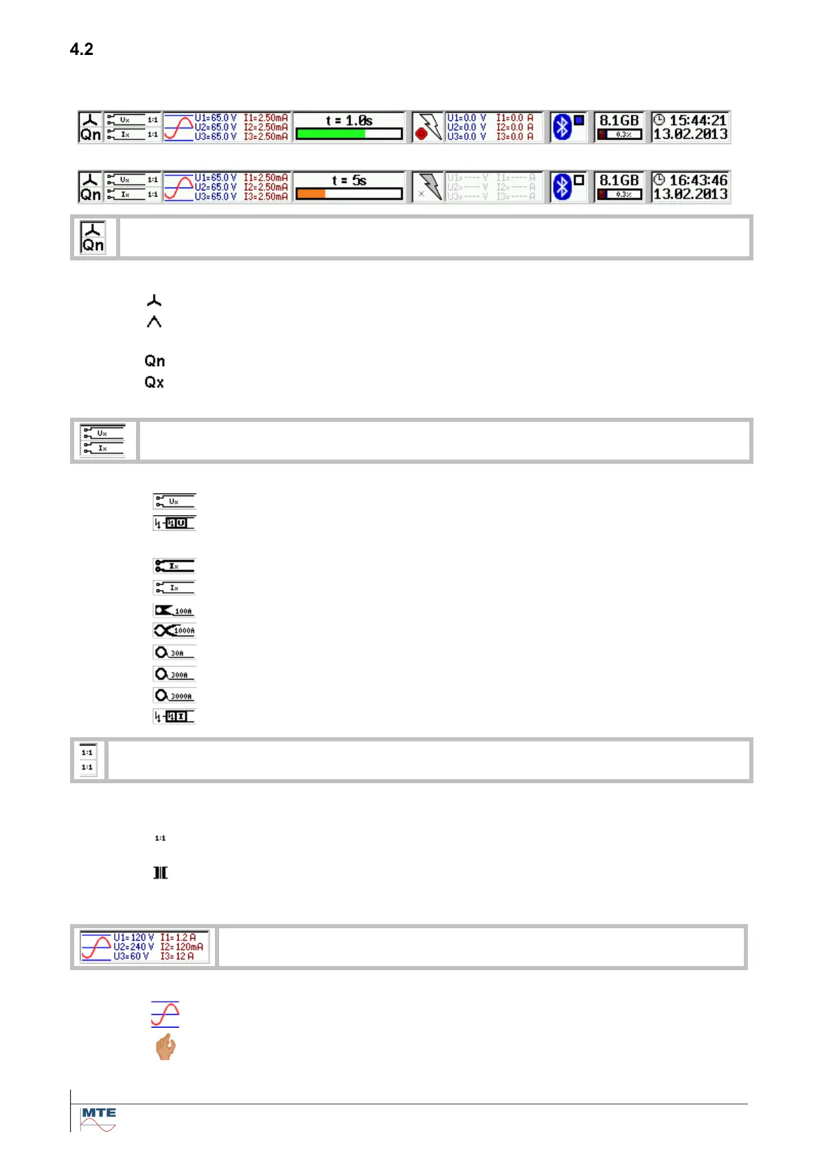 Status of activation of transformer factors for voltage inputs (upper symbol) and current