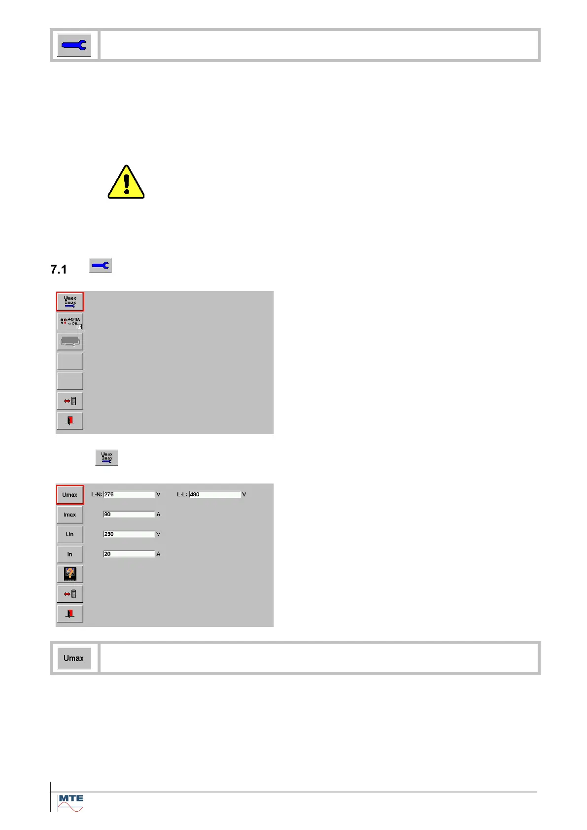 Setup of Umax and Imax and nominal values Un and In
