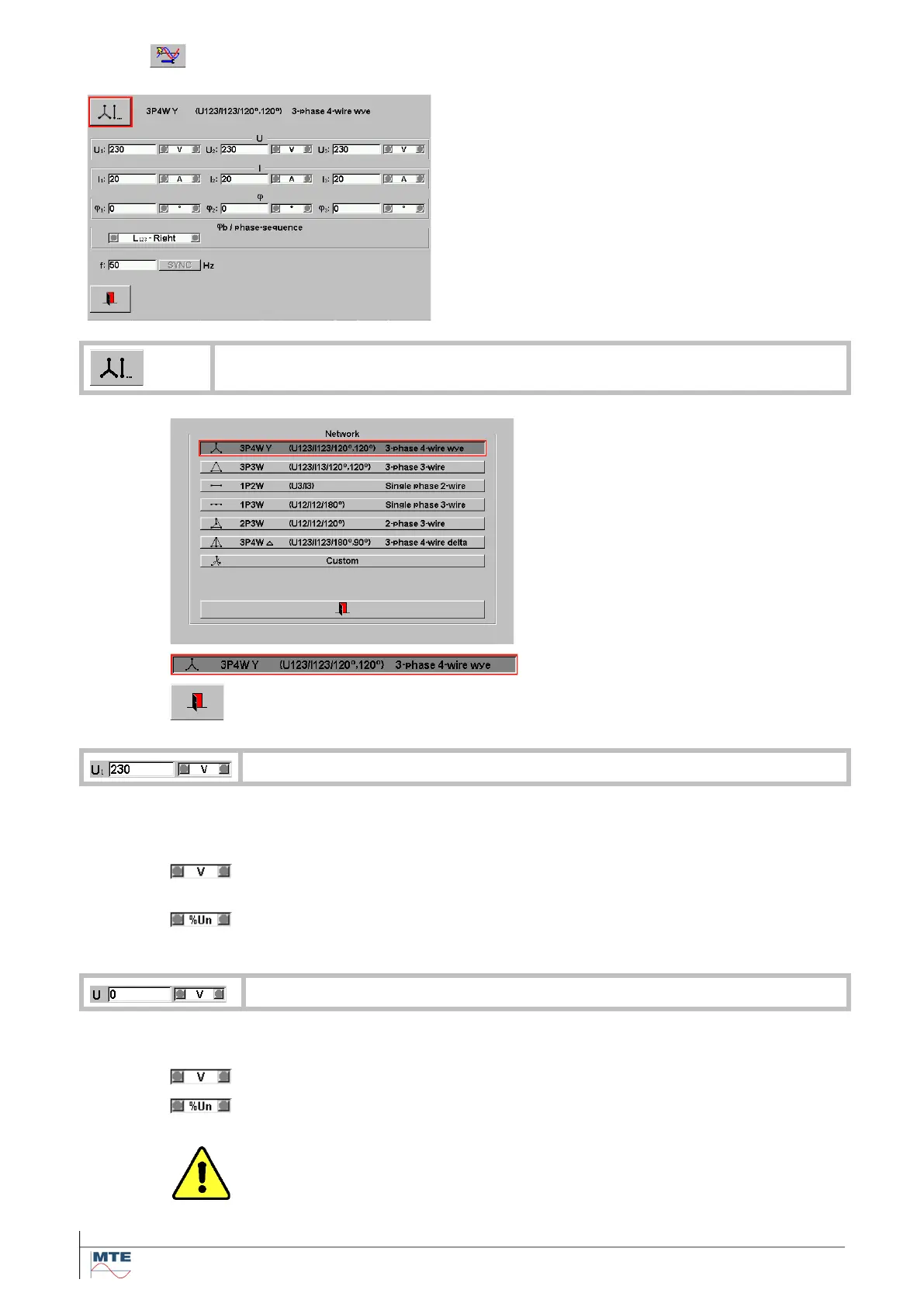 • Edit voltage U or U1, U2, U3