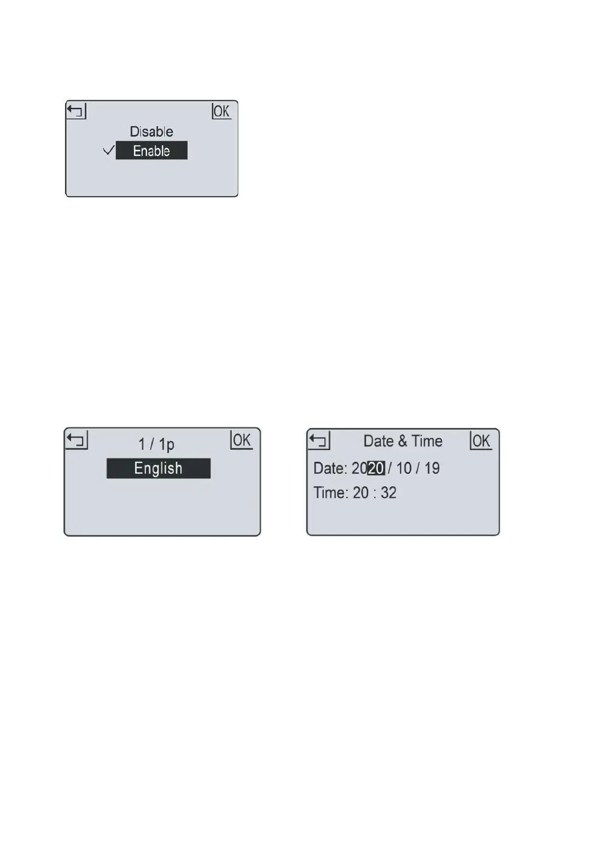 5. Press OK button to confirm setting.