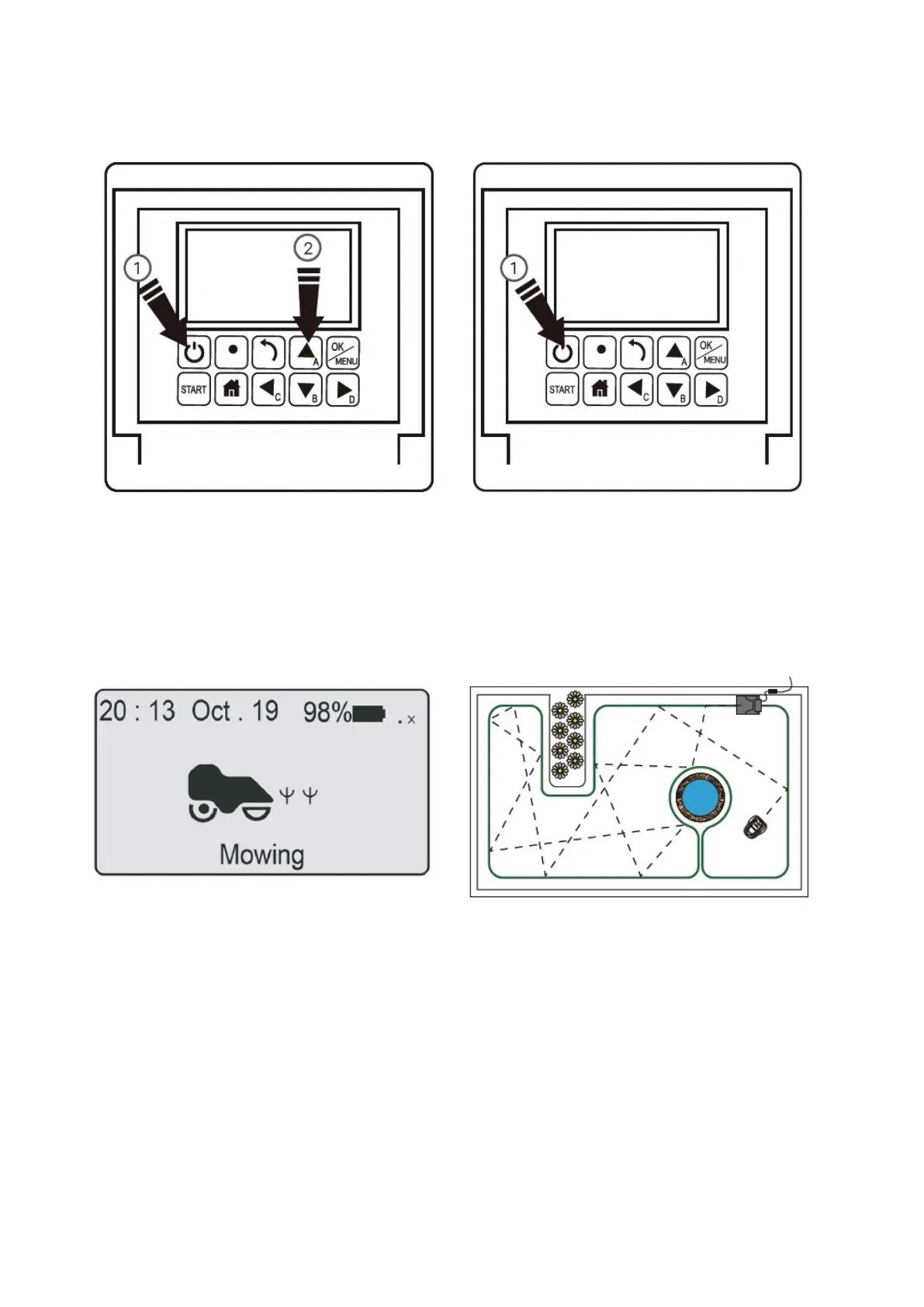 baterie nižší než 30 %, vrátí se robotická sekačka