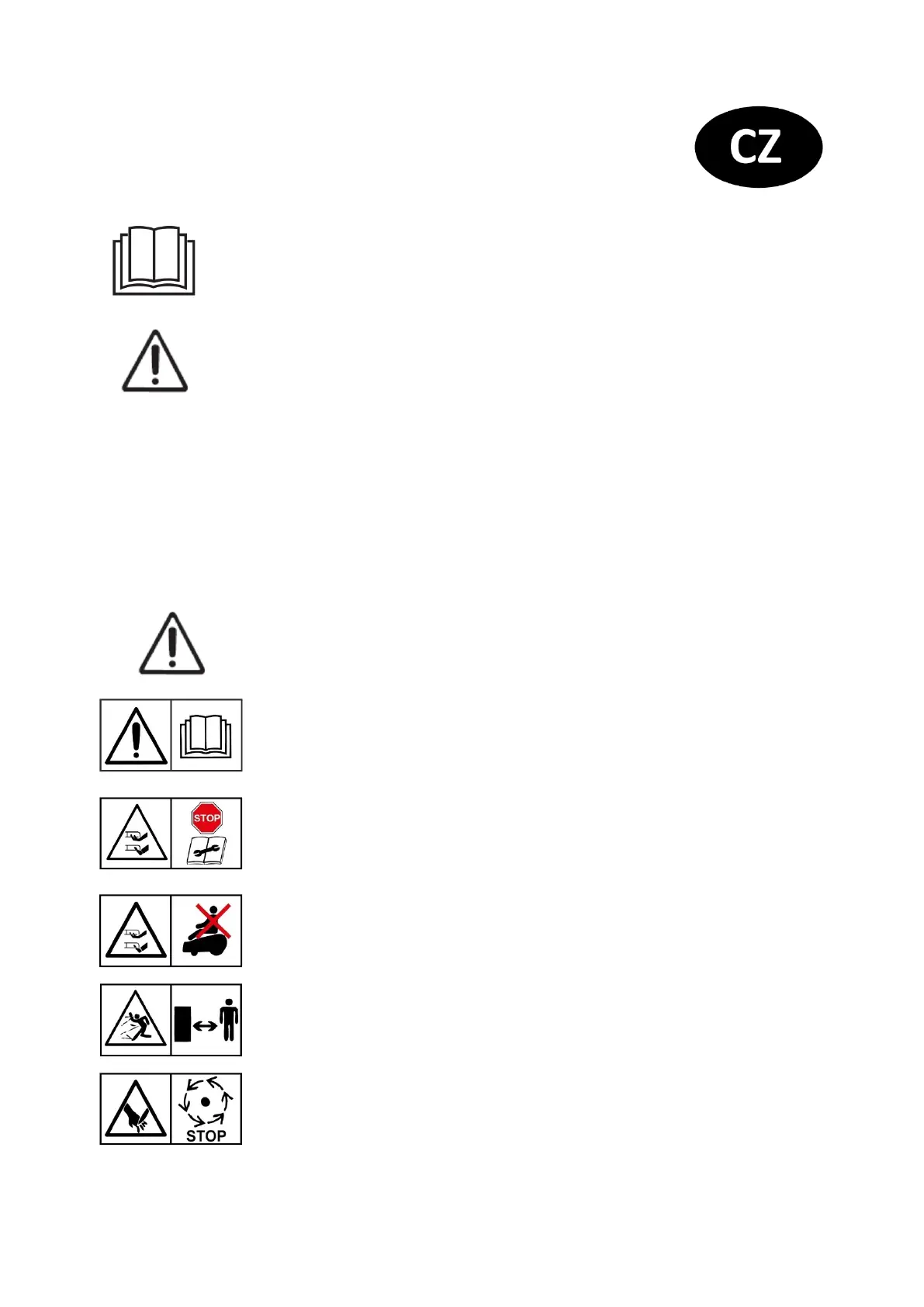 Výstraha - Před tím než se na stroji začne pracovat nebo se začne zvedat ze země je