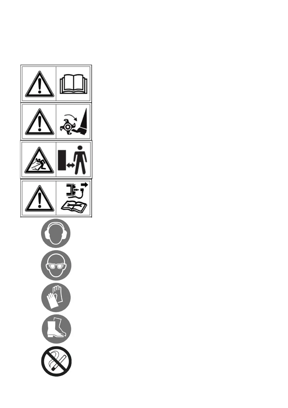 Gefahr! Rotierendes Arbeitswerkzeug: Hände und Füße in sicherem